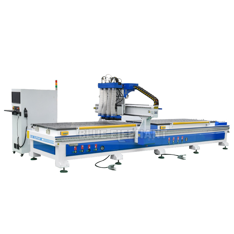 一機多用:切割下料、開槽排孔、雕刻機造型無所不能。板材自動定位,省心省力。可以對板材進行兩面打孔及開槽。三頭自動智能換刀,效率高、精度極準。速度非???,6kw大功率風冷主軸電機,18mm刨花板開料速度可達到20米/分鐘。兼容性好,兼容多種板式家具軟件、門板自動優(yōu)化排版軟件。